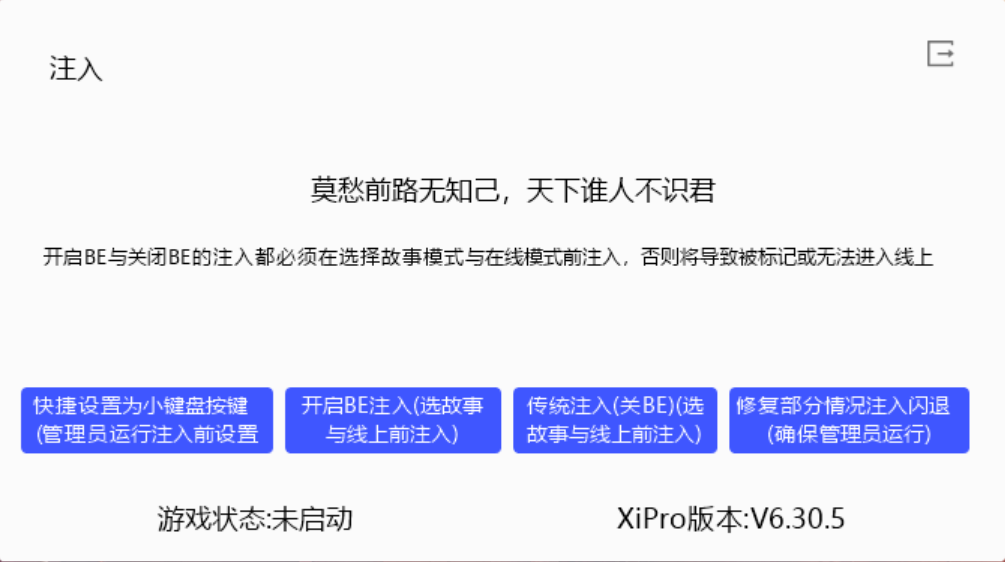 注:Xipro有两种注入方式,开be(默认开启)注入和关be(点击查看教程)注入