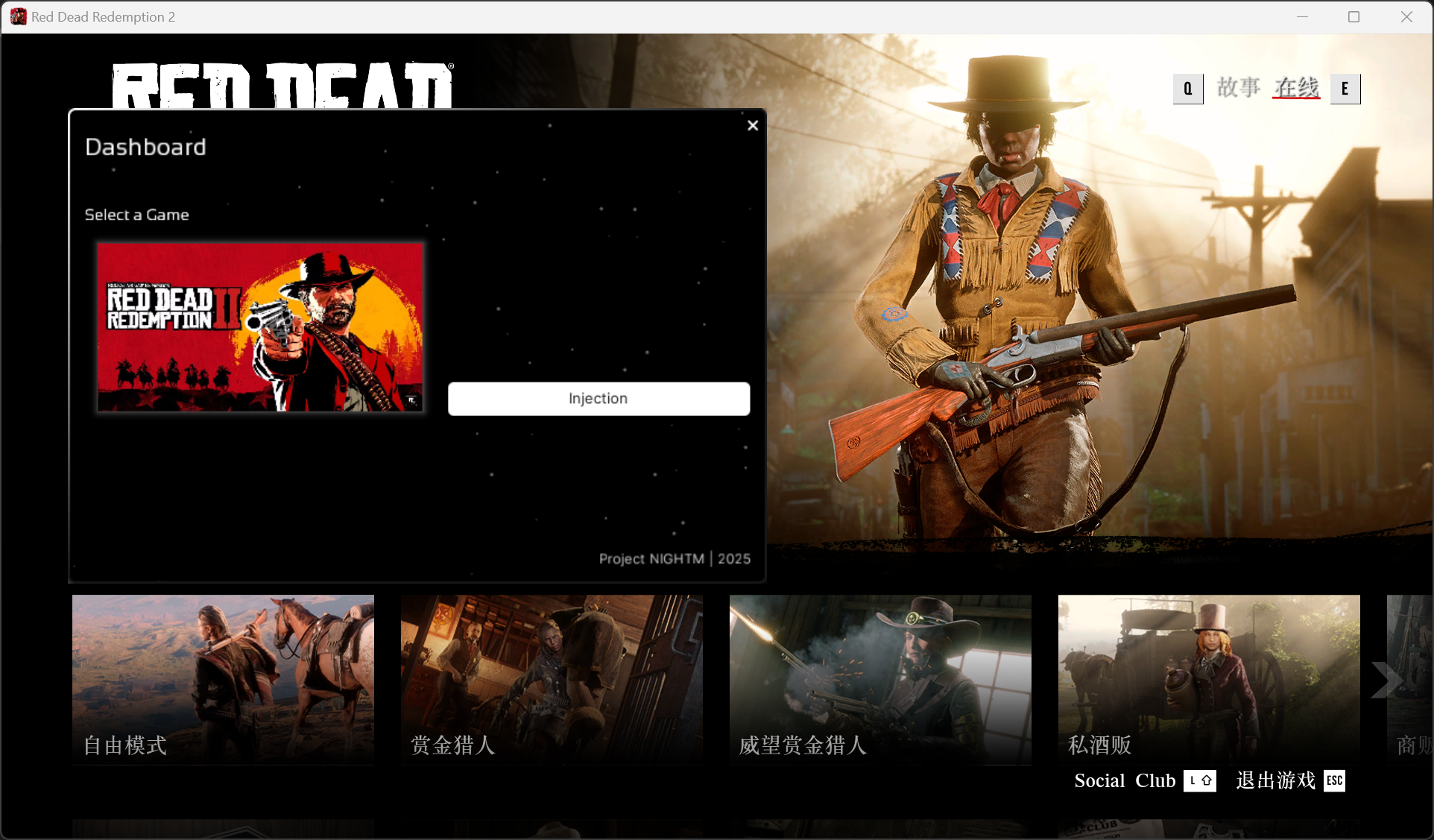 进入游戏主菜单后,点击Injection(注入),即可注入成功,等待运行框内信息加载完进入故事/在线模式就可以正常游玩了。